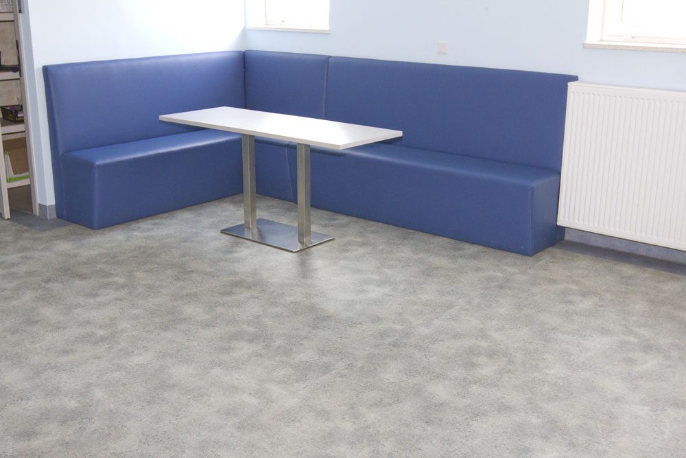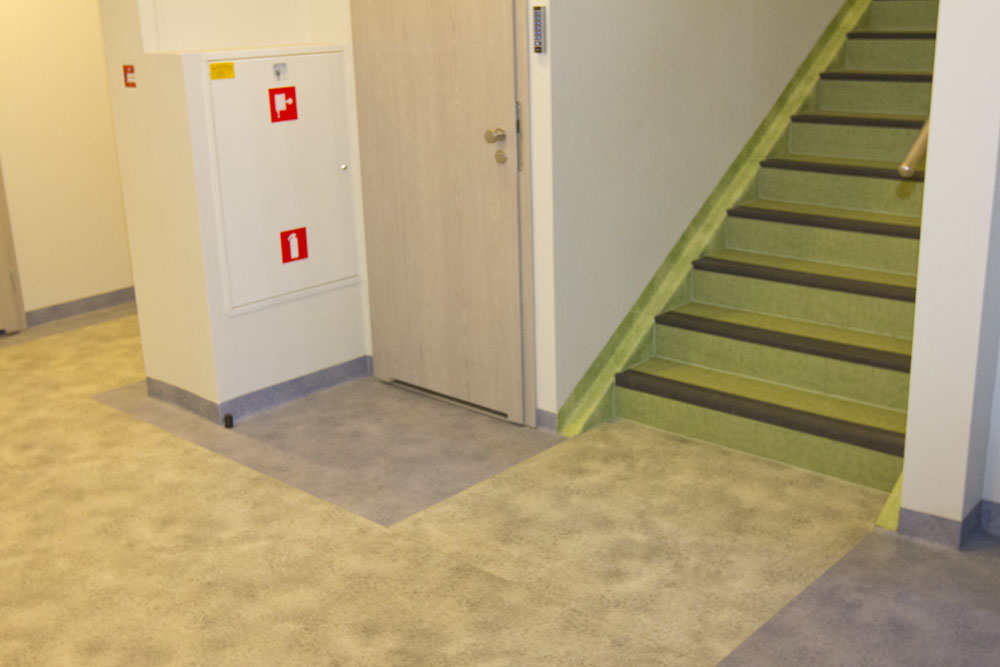 WYKORZYSTANE MATERIAŁY/ PRODUKTY/ ROZWIĄZANIA: Homogeniczna wykładzina PVC Norma Tarkett Rekord 42 zabezpieczona fabrycznie powłoką PUR