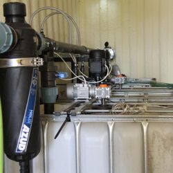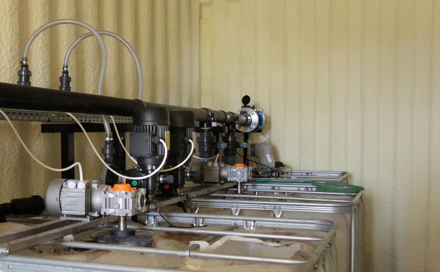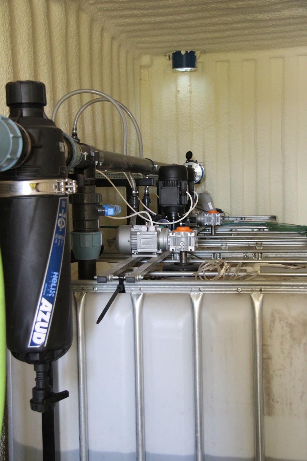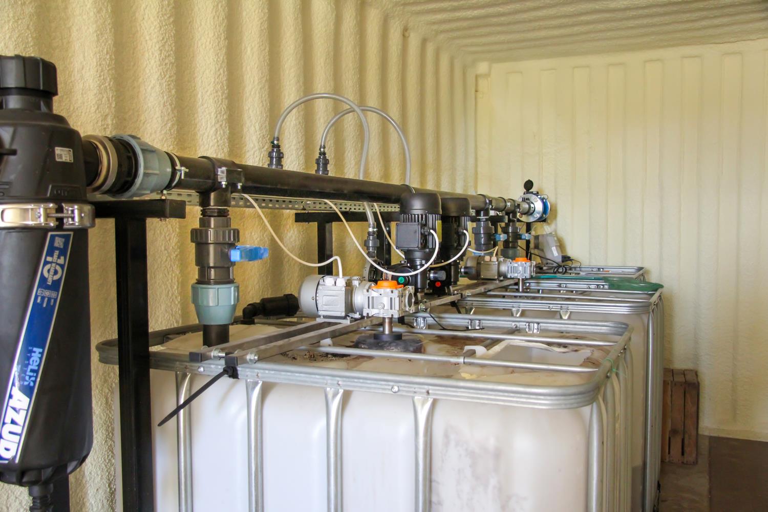 WYKORZYSTANE ROZWIĄZANIA: Linia kroplująca AZUD, Filtry AZUD Helix, armatura PEF, zawory kulowe, zawory zwrotne ze sprężyną, elektrozawory Bermad, wodomierz typu Woltmann, pompa dozująca TAURUS, pompa dozująca stężony kwas GEA, mieszadła