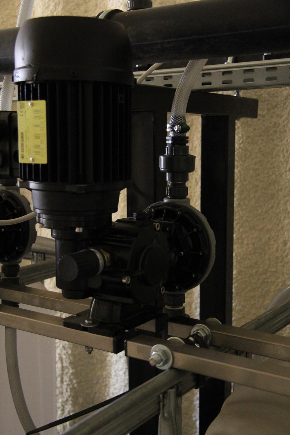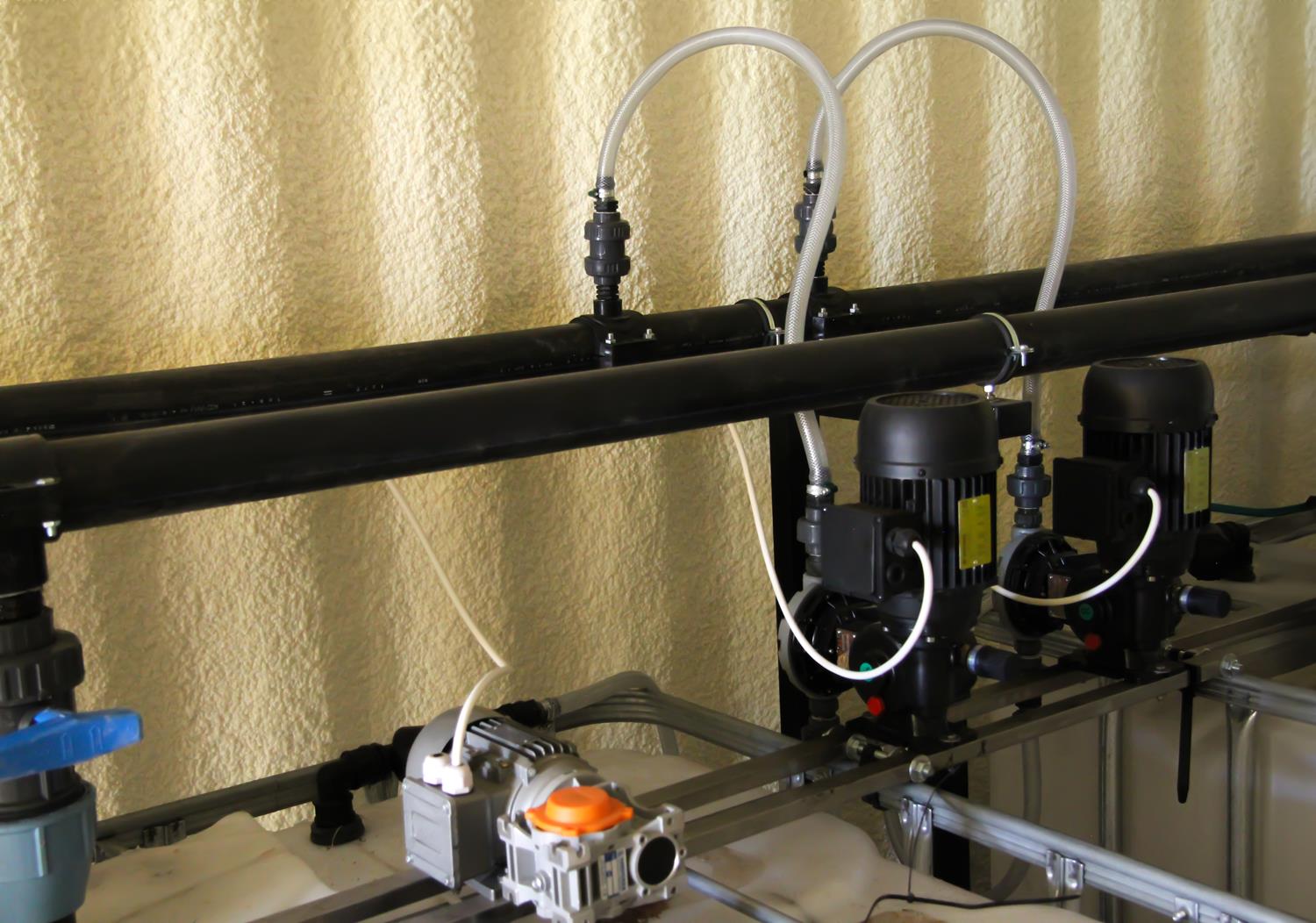 Głównymi kryteriami przy wyborze systemu fertygacji przez inwestora były: trwałość, możliwość zautomatyzowania i ekonomia. Zastosowano elektromechaniczne,membranowe pompy dozujące TAURUS, zdolne do dozowania stężonych mieszanek nawozowych i kwasu dzięki membranom z PTFE (Teflon®), ceramicznym kulom zaworów zwrotnych oraz głowicy dobieranej w zależności od dozowanych substancji. Zastosowane pompy dozujące Taurus charakteryzują się wysoką trwałością w porównaniu z popularnymi na rynku dozownikami, jednocześnie pozostając rozwiązaniem atrakcyjnym cenowo.