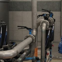 Filtry automatyczne w ciągu technologicznym oczyszczalni ścieków.