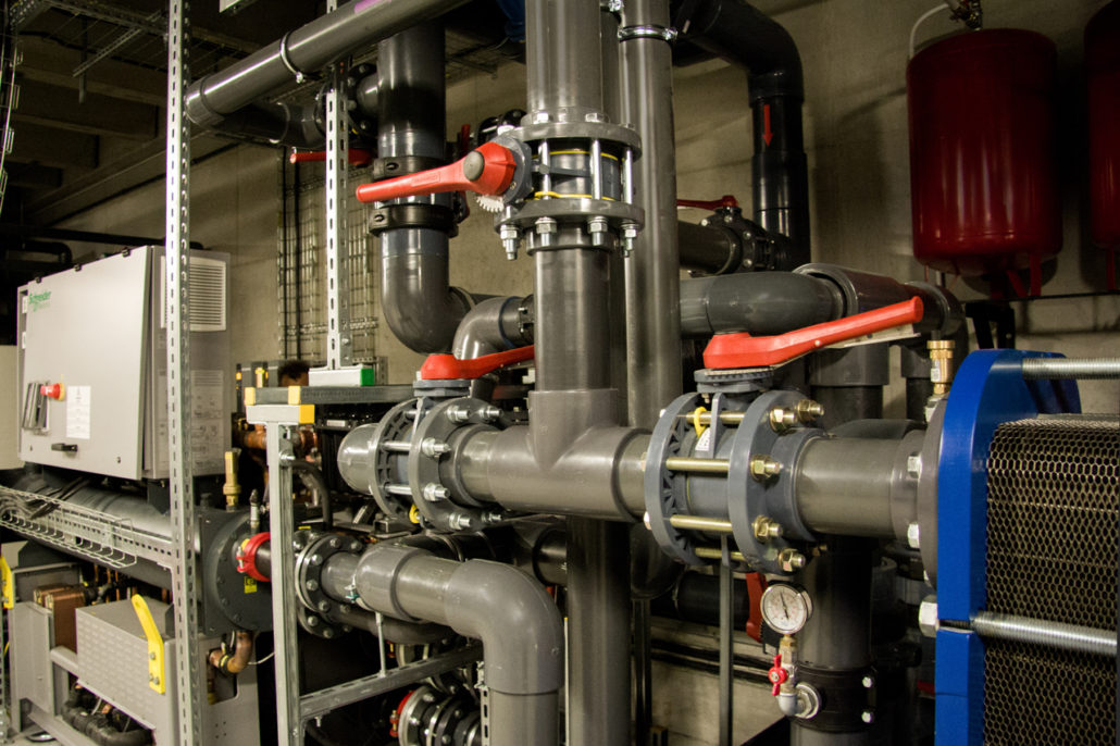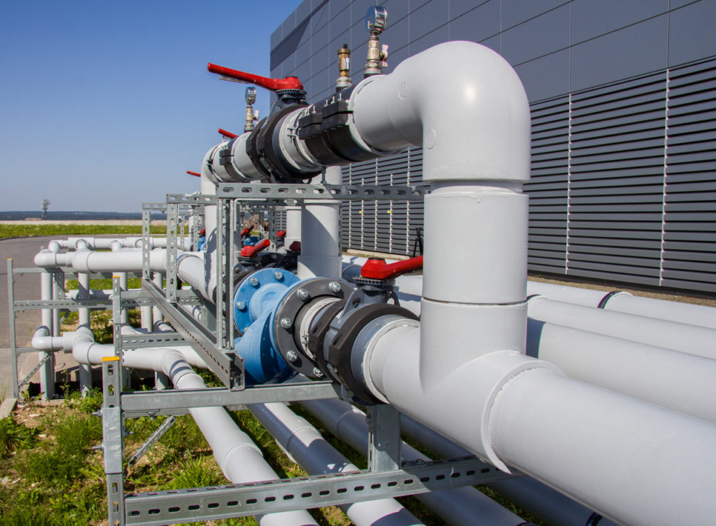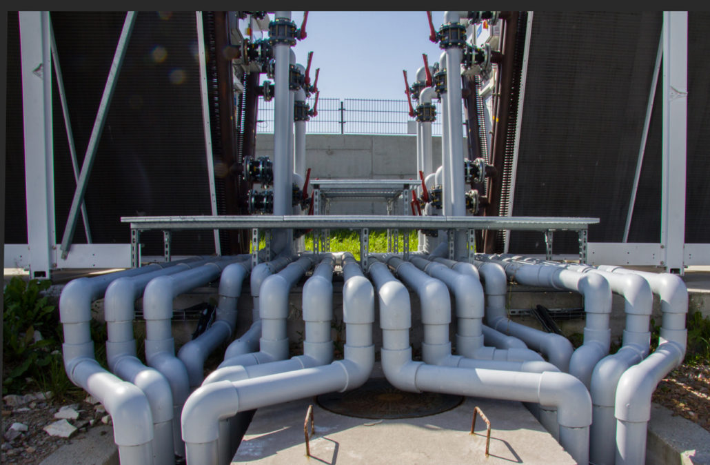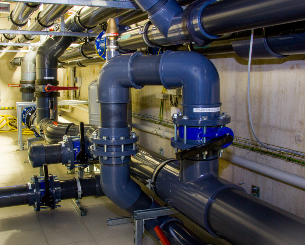 Kluczowym elementem tej nowoczesnej instalacji jest sieć rurociągów, które umożliwiają m.in. doprowadzenie czynnika chłodniczego do serwerów. Do zbudowania tak zaawansowanej instalacji chłodniczej, firma Polcom postawiła na elementy wykonane z PVC-U, które w przeciwieństwie do tych ze stali czy miedzi są odporne na korozję, lekkie i łatwe montażu. Tym, co wyróżnia instalację Polcomu na tle większości standardowych rurociągów z tworzyw sztucznych, wykorzystywanych m.in. w przemyśle, rolnictwie, oczyszczalniach ścieków czy basenach kąpielowych, jest zastosowanie innowacyjnego Netvitc System®. Jest to modułowy system łączenia elementów instalacji za pomocą specjalnych opasek dociskowych wykonanych z tworzywa sztucznego, mocowanych za pomocą zaledwie dwóch śrub. Nowatorska konstrukcja opaski zapewnia łatwe pozycjonowanie armatury (obrót o 360 stopni) oraz możliwość bezpośredniego połączenia np. kolana z zaworem. Opaska Netvitc, wykorzystując stopniowy wzrost ciśnienia, zapewnia maksymalną szczelność  systemu. Prosty montaż pozwala na odkręcenie/dokręcenie śrub w zaledwie kilka sekund, dzięki czemu montaż i demontaż staje się łatwy i szybki, a sama instalacja dzięki przy eliminacji dodatkowych spawów czy spoin klejonych, bardziej zwarta i niezwykle lekka.  Poprowadzenie instalacji pod podłogą pozwoliło na znaczne oszczędności przestrzeni a dodatkowo umożliwia szybki i łatwy dostęp do dowolnego miejsca rurociągu. To znaczna przewaga nad standardowymi instalacjami kanałów wentylacyjnych.