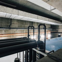Za całkowite wykonanie technologii basenowej w łódzkim obiekcie, odpowiedzialny był nasz klient – Firma NTW Jarosław Stec z Ząbek. Do wykonania zaawansowanej i nowoczesnej instalacji basenowej, NTW Jarosław Stec postawiło na instalacje wykonane z PVC-U, które wykazują się przede wszystkim właściwościami antykorozyjnymi, są lekkie i łatwe w montażu. Budmech dostarczył łącznie w ramach inwestycji ponad 2,5 kilometrów instalacji PVC-U wraz z kształtkami i armaturą. Co więcej, w efekcie współpracy firmy Budmech z wykonawcą wymyślono nietypowe rozwiązanie ułatwiające skoczkom ocenę odległości z trampoliny do lustra wody. Do zaburzenia gładkiej tafli wody posłużyły zraszacze Weathermatic.