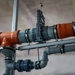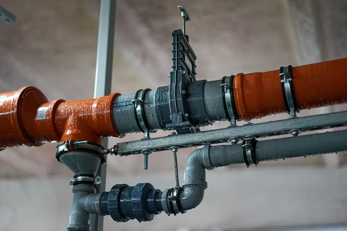 W części instalacji odprowadzającej zanieczyszczenia zastosowano również zasuwę nożową z PVC-U, która idealnie sprawdza się jako armatura odcinająca w mediach z zawartością ciał stałych. Przy całkowitym otwarciu wywołuje minimalne opory przepływu, a jej konstrukcja pozwala na odcinanie przepływu nawet szlamów i ciężkich zawiesin. Natomiast zastosowane zawory zwrotne zabezpieczają instalację przed niepożądanym przepływem wstecznym mediów. Wyposażone w sprężynę domykająca, gwarantują całkowitą szczelność.