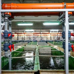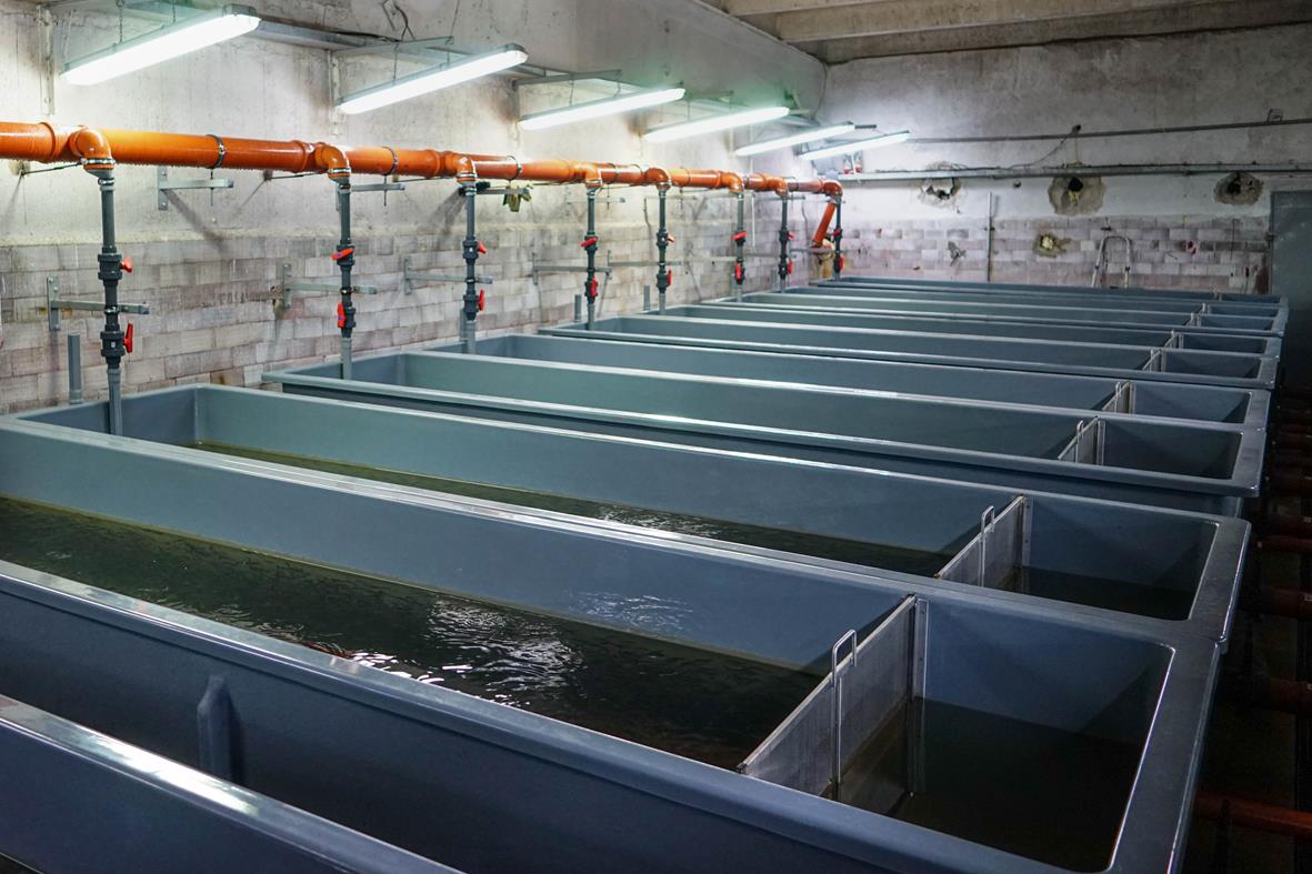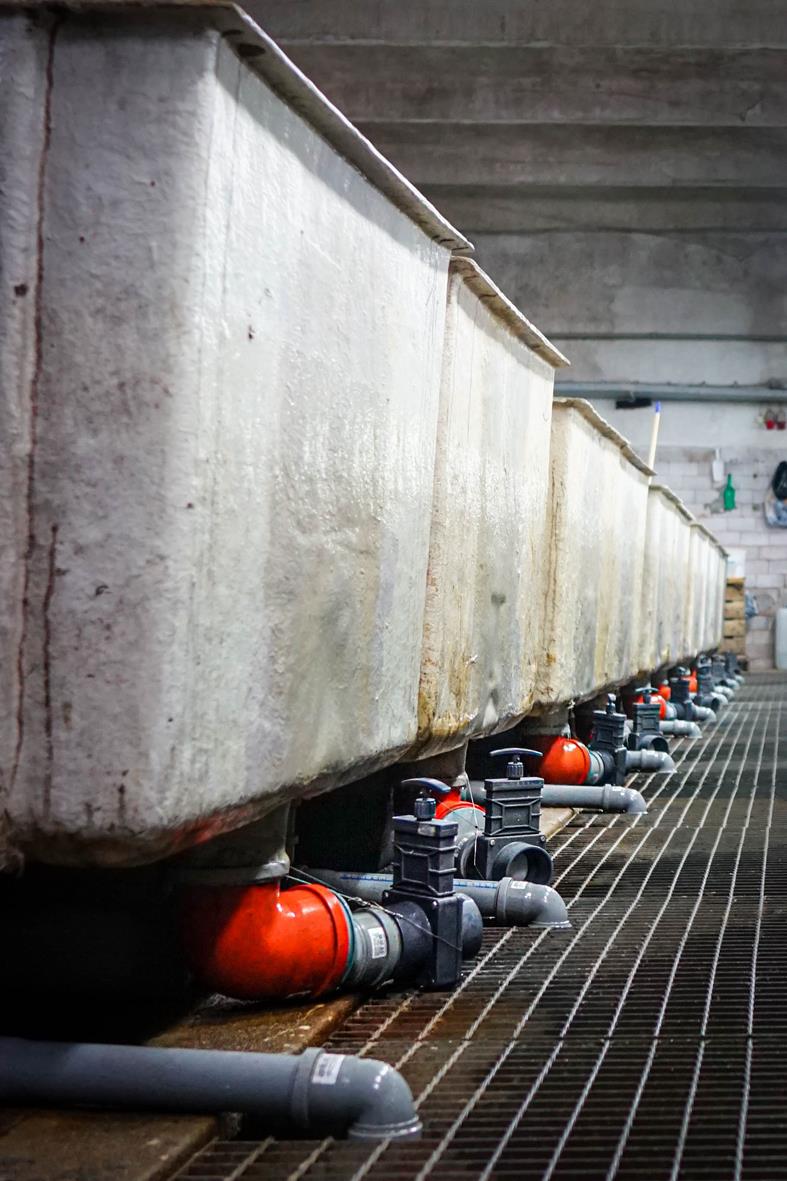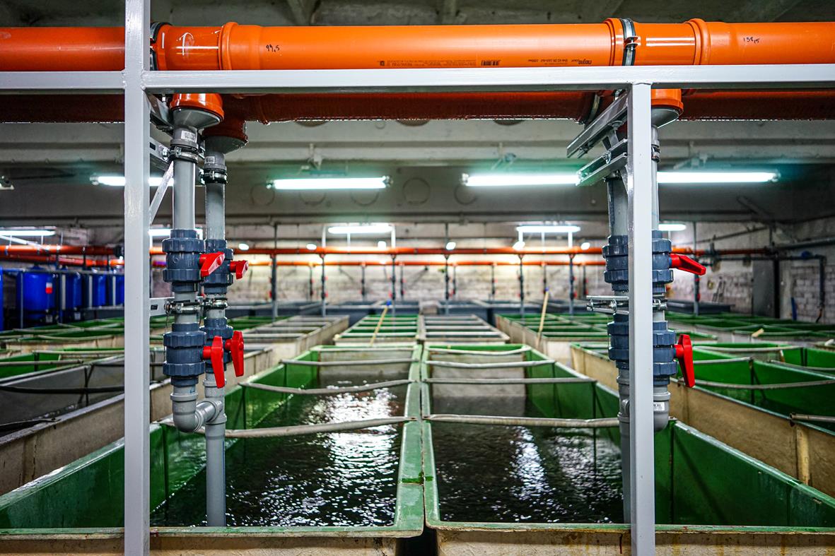 Projekt modernizacji zakładu dotyczył wylęgarni ryb. Wprowadziliśmy system filtrowania, natleniania i oczyszczania wody – mówi Rafał Narloch, Główny Specjalista ds. Produkcji. Modyfikacje zakładały także montaż 100 zaworów i położenie rurociągu o długości 80 metrów doprowadzającego wodę do aparatów lęgowych i basenów do podchowu wylęgu pstrąga tęczowego. Poprzez wykonaną modernizację możemy korzystać z wody głębinowej, która ma stałą temperaturę. Dodatkowo w jednym czasie możemy prowadzić inkubację miliona sztuk ziaren ikry oraz podchów miliona sztuk wylęgu – dodaje Narloch. Przez rurociągi płynie woda głębinowa 20 m3/godz. o temp. 10°C.