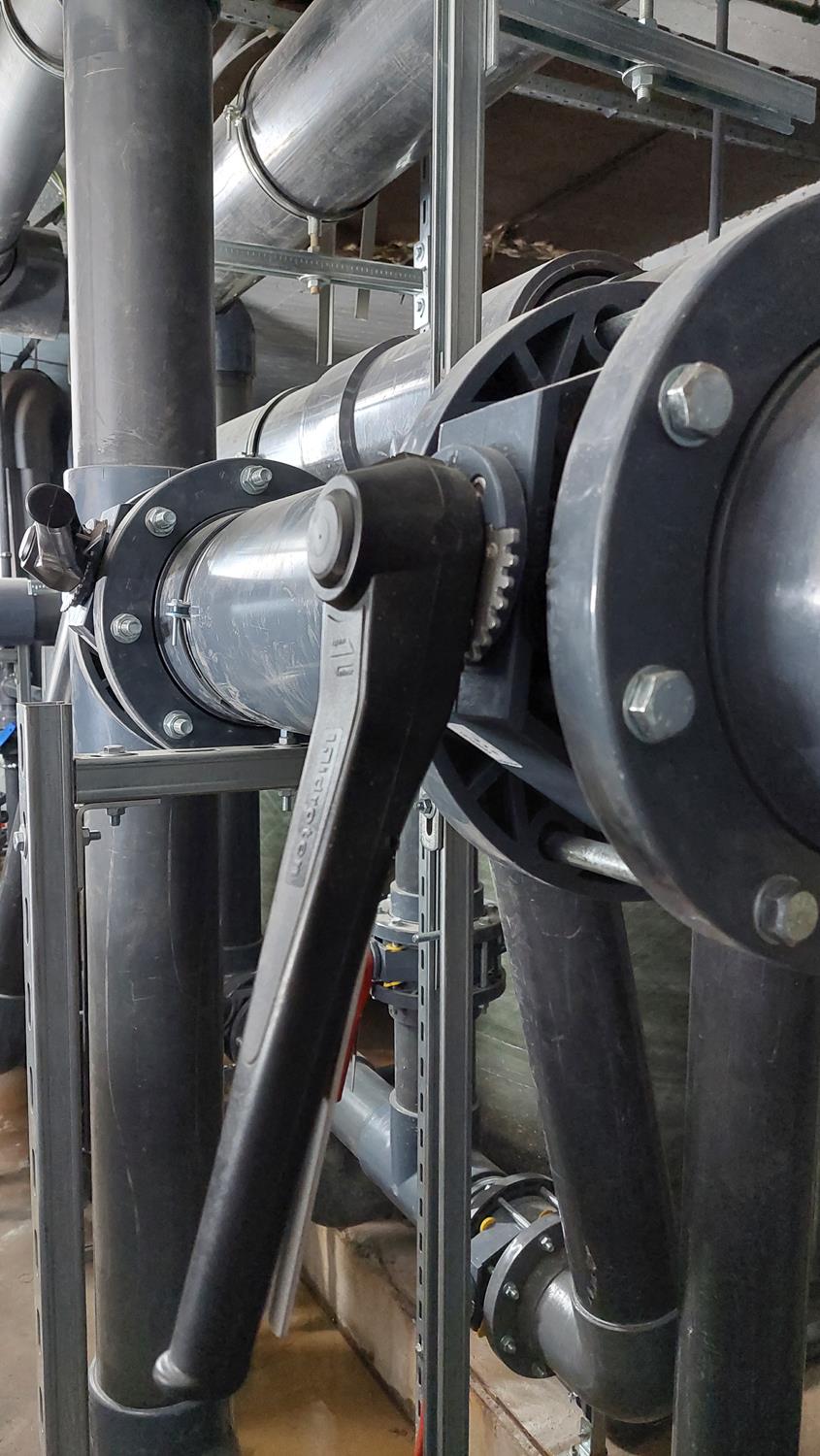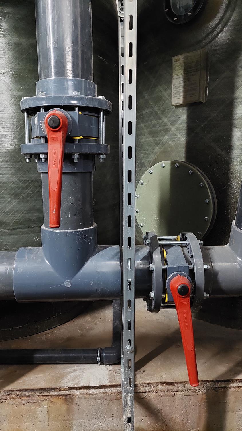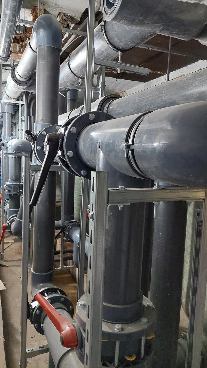 WYKORZYSTANE MATERIAŁY/ PRODUKTY/ROZWIĄZANIA: Rury PVC-U D 225, kształtki PVC-U oraz zawory klapowe Hidroten z uszczelnieniem Viton.