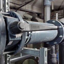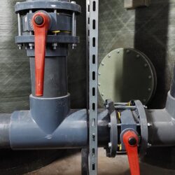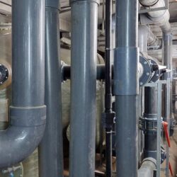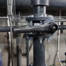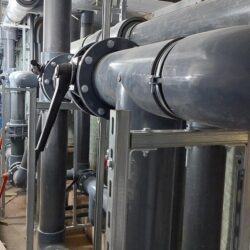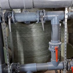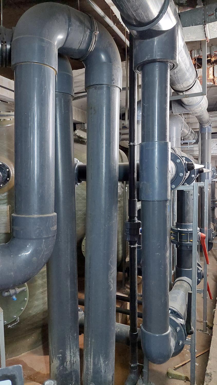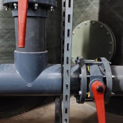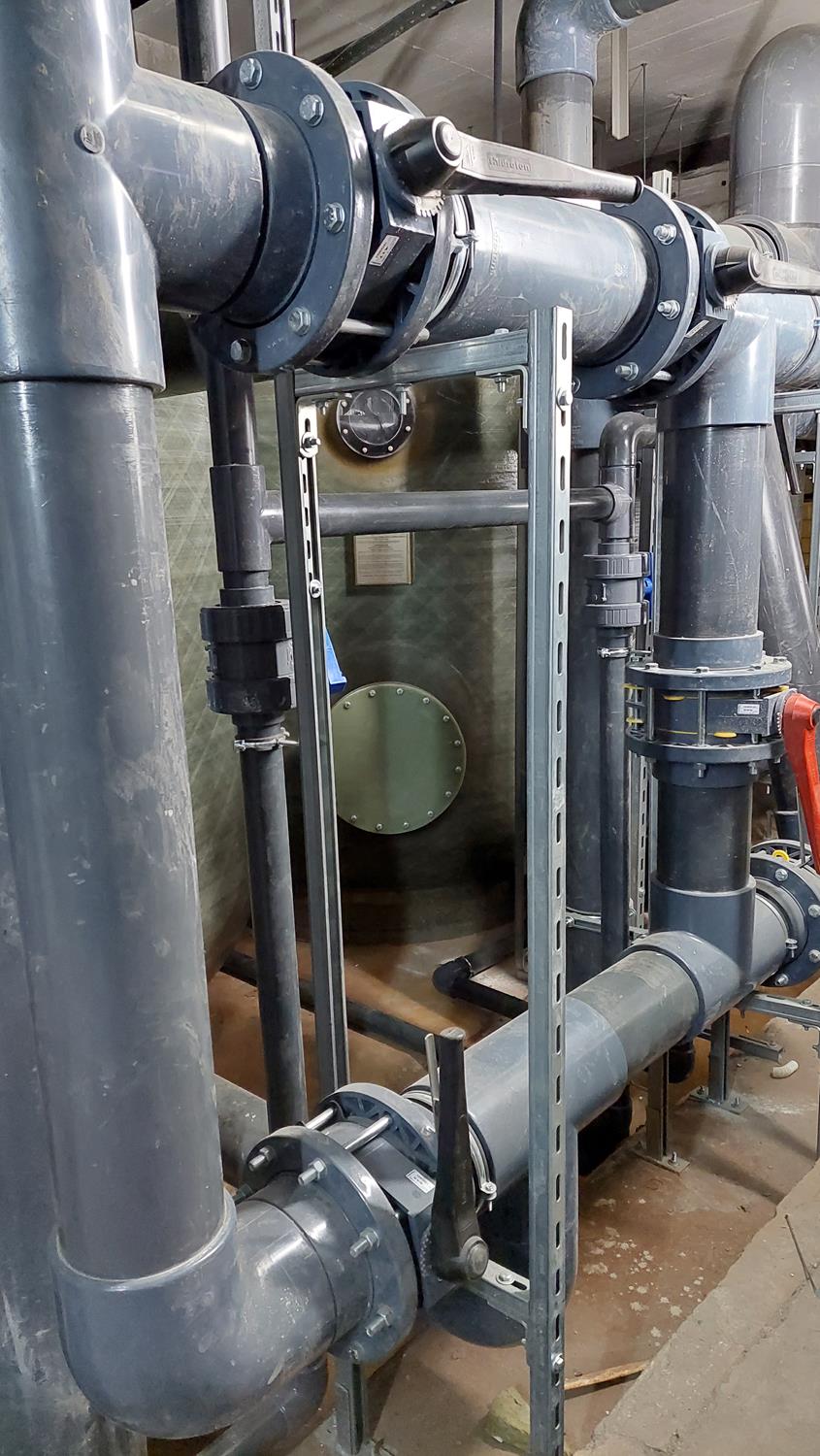 WYKORZYSTANE MATERIAŁY/ PRODUKTY/ROZWIĄZANIA: Rury PVC-U D 225, kształtki PVC-U oraz zawory klapowe Hidroten z uszczelnieniem Viton.