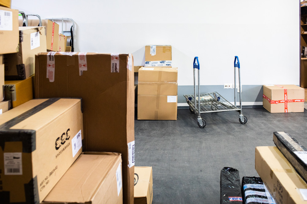 Puzzle winylowe w pomieszczeniach magazynowych w budynku sortowni
