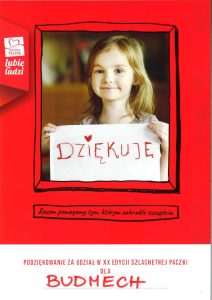 Z dumą i radością informujemy, że w tym roku firma Budmech zasiliła szeregi “Szlachetnej Paczki”. Dzięki wielkiemu sercu pracowników, którzy z ogromnym zaangażowaniem włączyli się w pomoc, jak również hojności kierownictwa firmy, potrzebująca rodzina otrzymała ogromne wsparcie i mogła cieszyć się wyjątkowymi świętami.