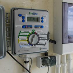 - Sterownik nawadniania zamontowany na ścianie — automatyczne sterowanie systemem nawadniania kroplowego papryki